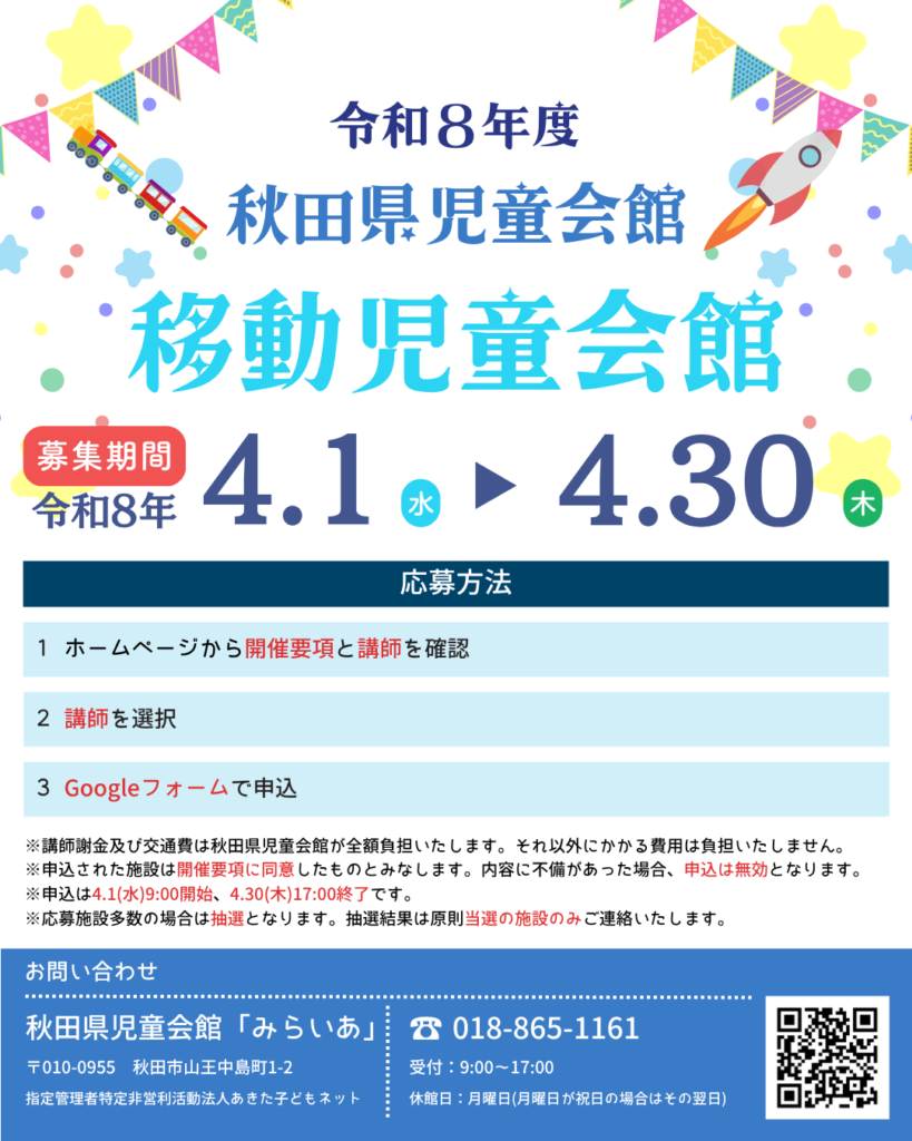 令和8年度移動児童会館の申込受付を開始いたしました。